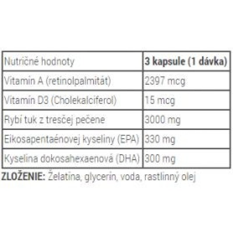 | Neželeni učinki | Ribji priokus, prebavne motnje, nevarnost krvavitve pri velikih odmerkih |